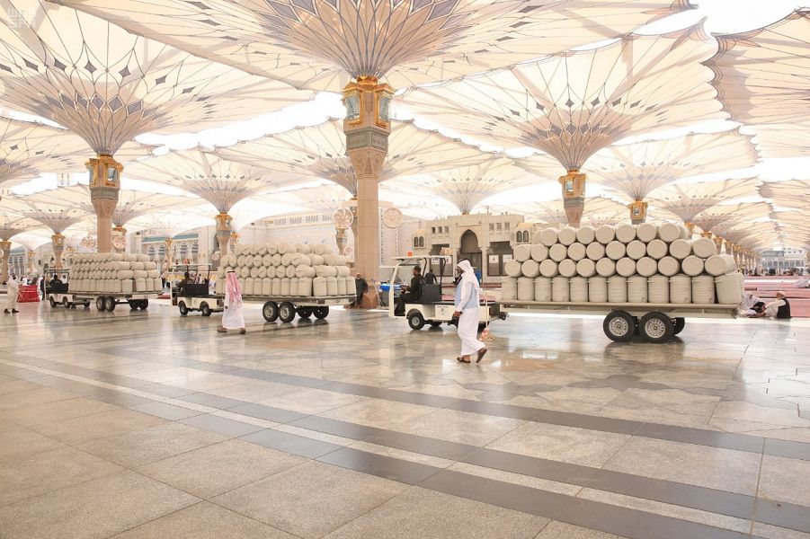 وتقوم إدارة السقيا بتهيئة المشربيات في عموم الساحات، والتي يبلغ عددها 60 مشربية حيث تحتوي كل مشربية على 21 أو 12 صنبورًا وعدد 40 أو 24 حامل كاسات، إضافة إلى تأمين كاسات الشرب التي تصل إلى 400 كرتون في اليوم الواحد، ما يعادل 800,000 كاسة موزعة داخل المسجد النبوي وسطحه وساحاته.